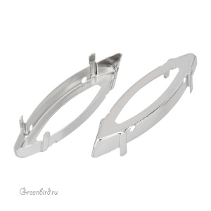 Оправа для ювелирных кристаллов – 4200 Marquise Fancy Stone FS. Размер: 35 х 9,5 мм, высота боковой стороны (без лапок): 5,7 мм, отверстия: 1,7 мм. Материал: томпак (разновидность латуни), покрытие: белая бронза (white bronze, сплав меди с оловом и цинком). Производство: Германия. Цена указана за 1 шт.