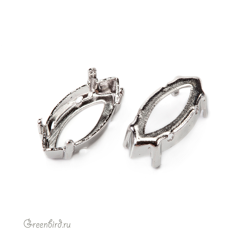 Оправа для ювелирных кристаллов Наветт – 4228 Navette FS. Размер: 15 х 7 мм, высота боковой стороны (без лапок): 3,55 мм, отверстия: 1,1 мм. Материал: томпак (разновидность латуни), покрытие: белая бронза (white bronze, сплав меди с оловом и цинком). Производство: Германия. Цена указана за 1 шт.