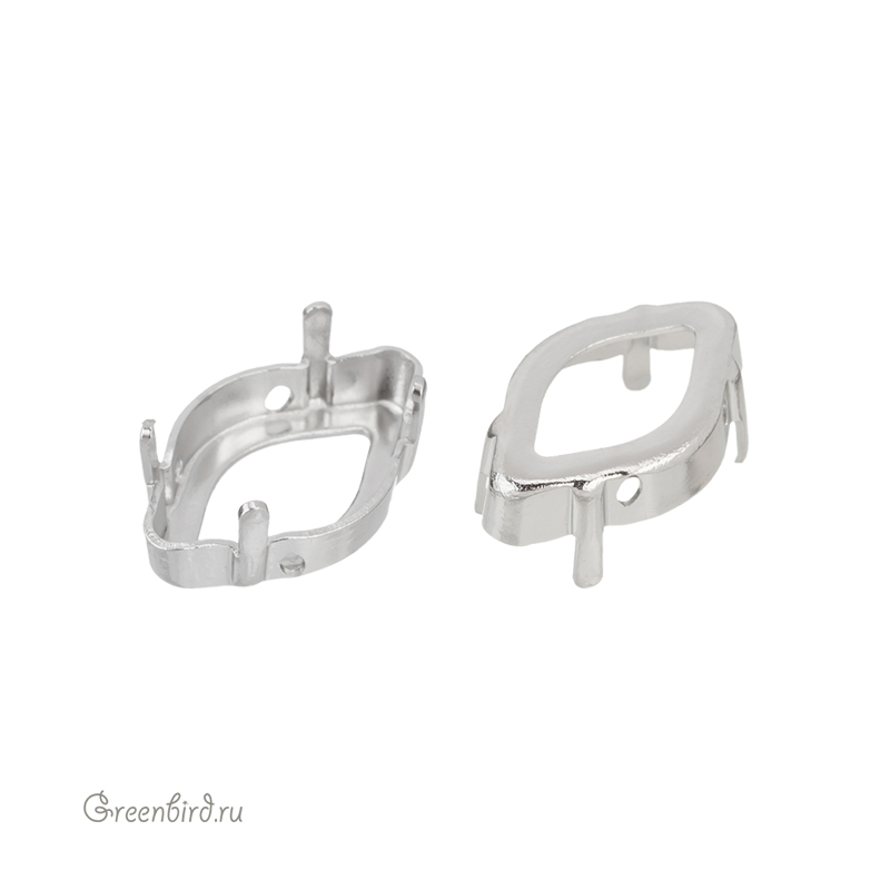 Оправа для ювелирных кристаллов – 4230 Lemon Fancy Stone. Размер: 14 х 9 мм, высота боковой стороны (без лапок): 3,15 мм, отверстия: 0,7-0,8 мм. Материал: томпак (разновидность латуни), покрытие: белая бронза (white bronze, сплав меди с оловом и цинком). Производство: Германия. Цена указана за 1 шт.