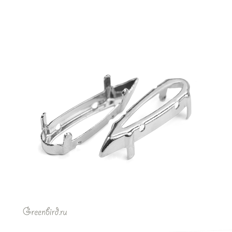 Оправа для ювелирных кристаллов Капля (Груша) – 4331 Raindrop Fancy Stone. Размер: 20 мм, высота боковой стороны (без лапок): 3,1 мм, отверстия: 1,1 мм. Материал: томпак (разновидность латуни), покрытие: белая бронза (white bronze, сплав меди с оловом и цинком). Производство: Германия. Цена указана за 1 шт.