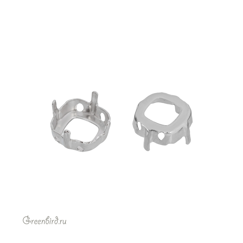 Оправа для ювелирных кристаллов Кушон Квадрат – 4470 Cushion Square Fancy Stone. Размер: 10 мм, высота боковой стороны (без лапок): 3,25 мм, отверстия: 1 мм. Материал: томпак (разновидность латуни), покрытие: белая бронза. Производство: Германия. Цена указана за 1 шт.