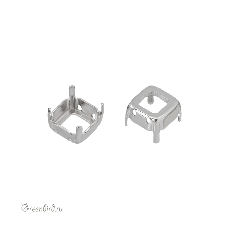Оправа для ювелирных кристаллов Квадрат – 4480 Imperial Fancy Stone. Размер: 8 мм, высота боковой стороны (без лапок): 3,2 мм, отверстия: 0,8 мм. Материал: томпак (разновидность латуни), покрытие: платина. Производство: Германия. Цена указана за 1 шт.