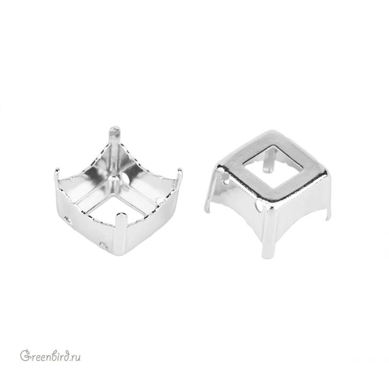 Оправа для ювелирных кристаллов Квадрат – 4499 Prismatic Square Fancy Stone FS. Размер: 10 мм, высота боковой стороны (без лапок): 3,9 мм и 4,9 мм (уголки), отверстия: 1,1 мм. Материал: томпак (разновидность латуни), покрытие: белая бронза (white bronze, сплав меди с оловом и цинком). Производство: Германия. Цена указана за 1 шт.