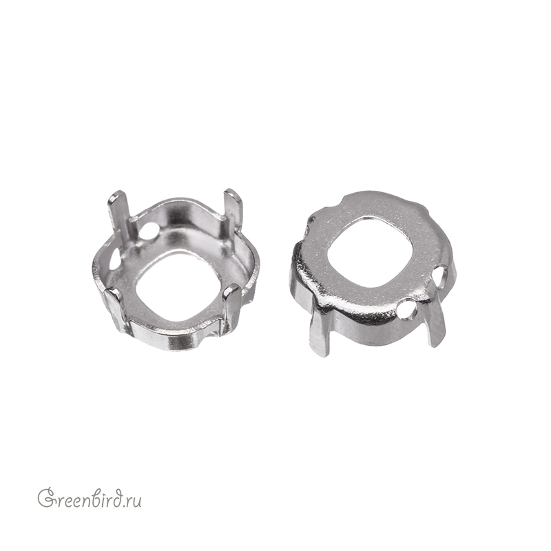 Оправа для ювелирных кристаллов Тонкий Кушон Квадрат - 4483 Thin Cushion FS. Размер: 8 мм, высота боковой стороны (без лапок): 2,4 мм, отверстия: 0,8-1 мм. Материал: томпак (разновидность латуни), покрытие: белая бронза (white bronze, сплав меди с оловом и цинком). Производство: Германия. Цена указана за 1 шт.