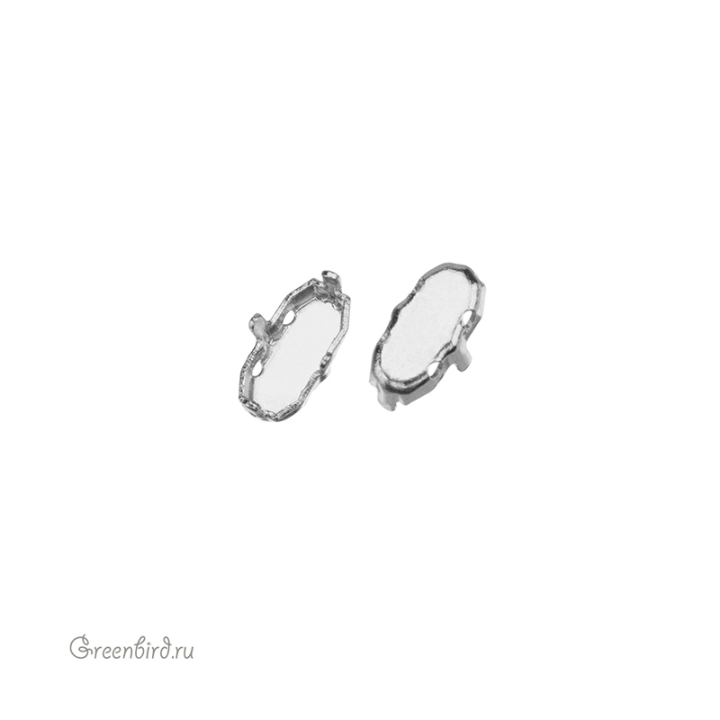 Оправа для ювелирных кристаллов – 4595 Elongated Imperial FS. Размер: 8 х 4 мм, высота боковой стороны (без лапок): 2,3 мм, отверстия: 0,7-0,8 мм. Материал: томпак (разновидность латуни), покрытие: белая бронза (white bronze, сплав меди с оловом и цинком). Производство: Германия. Цена указана за 1 шт.