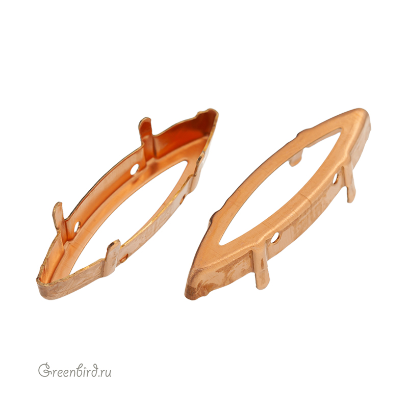 Оправа для ювелирных кристаллов – 4200 Marquise Fancy Stone FS. Размер: 35 х 9,5 мм, высота боковой стороны (без лапок): 5 мм, отверстия: 1,4-1,5 мм. Материал: томпак (разновидность латуни), без покрытия. Технические, подходят для пайки. Допускается неоднородность цвета. В разных партиях цвет может варьироваться от светло-золотого к медному. Производство: Германия. Цена указана за 1 шт.