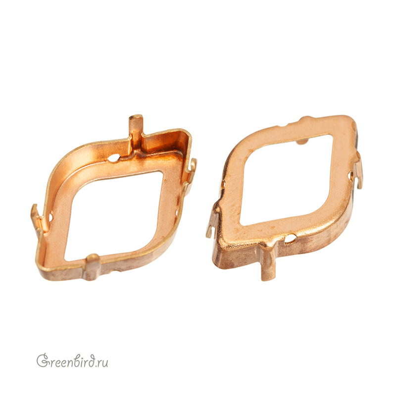 Оправа для ювелирных кристаллов – 4230 Lemon Fancy Stone. Размер: 23 х 15 мм, высота боковой стороны (без лапок): 3,90 мм, отверстия: 1-1,2 мм. Материал: томпак (разновидность латуни), без покрытия. Технические, подходят для пайки. Допускается неоднородность цвета. В разных партиях цвет может варьироваться от светло-золотого к медному. Производство: Германия. Цена указана за 1 шт.