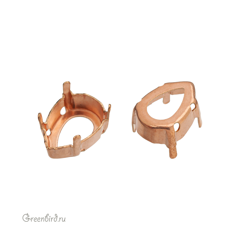 Оправа для ювелирных кристаллов Капля (Груша) – 4320 Pear Fancy Stone. Размер: 14 х 10 мм, высота боковой стороны (без лапок): 4,3 мм, отверстия: 1,2 мм. Материал: томпак (разновидность латуни), без покрытия. Технические, подходят для пайки. Допускается неоднородность цвета. В разных партиях цвет может варьироваться от светло-золотого к медному. Производство: Германия. Цена указана за 1 шт.