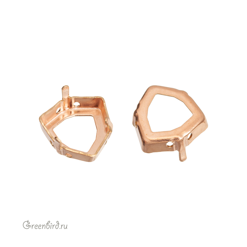Оправа для ювелирных кристаллов – 4706 Trilliant Fancy Stone. Размер: 12 мм, высота боковой стороны (без лапок): 3,4 мм, отверстия: 0,9 мм. Материал: томпак (разновидность латуни), без покрытия. Технические, подходят для пайки. Допускается неоднородность цвета. В разных партиях цвет может варьироваться от светло-золотого к медному. Производство: Германия. Цена указана за 1 шт.