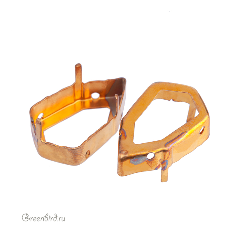 Оправа для ювелирных кристаллов – 4707 Slim Trilliant FS. Размер: 18,7 х 11,8 мм, высота боковой стороны (без лапок): 5,6 мм, отверстия: 1,2-1,35 мм. Материал: томпак (разновидность латуни), без покрытия. Технические, подходят для пайки. Допускается неоднородность цвета. В разных партиях цвет может варьироваться от светло-золотого к медному. Производство: Германия. Цена указана за 1 шт.