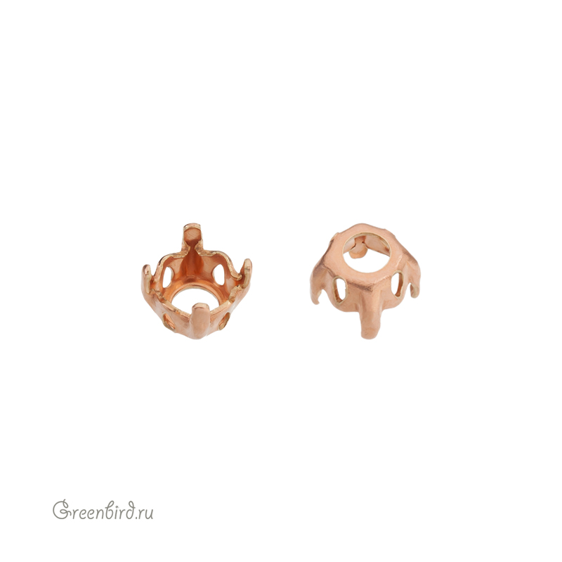 Оправа для ювелирных кристаллов – 1088 Chaton. Размер: SS18/19 (5 мм), высота боковой стороны (без лапок): 2,85-3,01 мм, отверстия: 0,8 мм. Материал: томпак (разновидность латуни), без покрытия. Технические, подходят для пайки. Допускается неоднородность цвета. В разных партиях цвет может варьироваться от светло-золотого к медному. Производство: Германия. Цена указана за 1 шт.