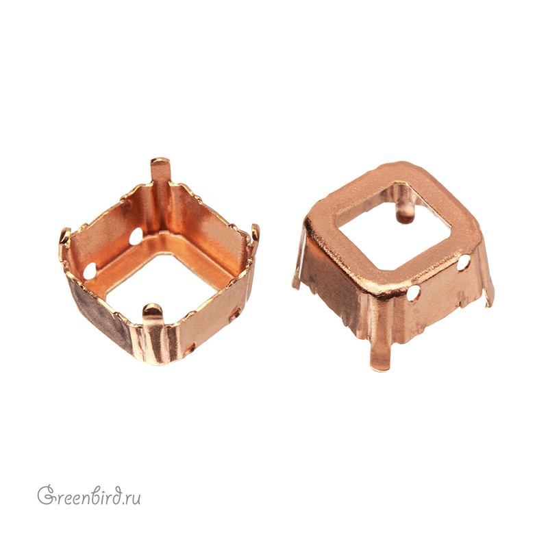 Оправа для ювелирных кристаллов Квадрат - 4480 Imperial Fancy Stone. Размер: 14 мм, высота боковой стороны (без лапок): 6,4 мм, отверстия: 0,8-1 мм. Материал: томпак (разновидность латуни), без покрытия. Технические, подходят для пайки. Допускается неоднородность цвета. В разных партиях цвет может варьироваться от светло-золотого к медному. Производство: Германия. Цена указана за 1 шт.