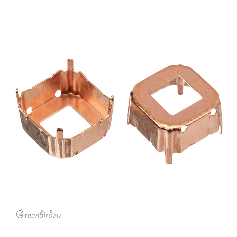 Оправа для ювелирных кристаллов Квадрат - 4480 Imperial Fancy Stone. Размер: 18 мм, высота боковой стороны (без лапок): 7,5 мм, отверстия: 1,3-1,5 мм. Материал: томпак (разновидность латуни), без покрытия. Технические, подходят для пайки. Допускается неоднородность цвета. В разных партиях цвет может варьироваться от светло-золотого к медному. Производство: Германия. Цена указана за 1 шт.