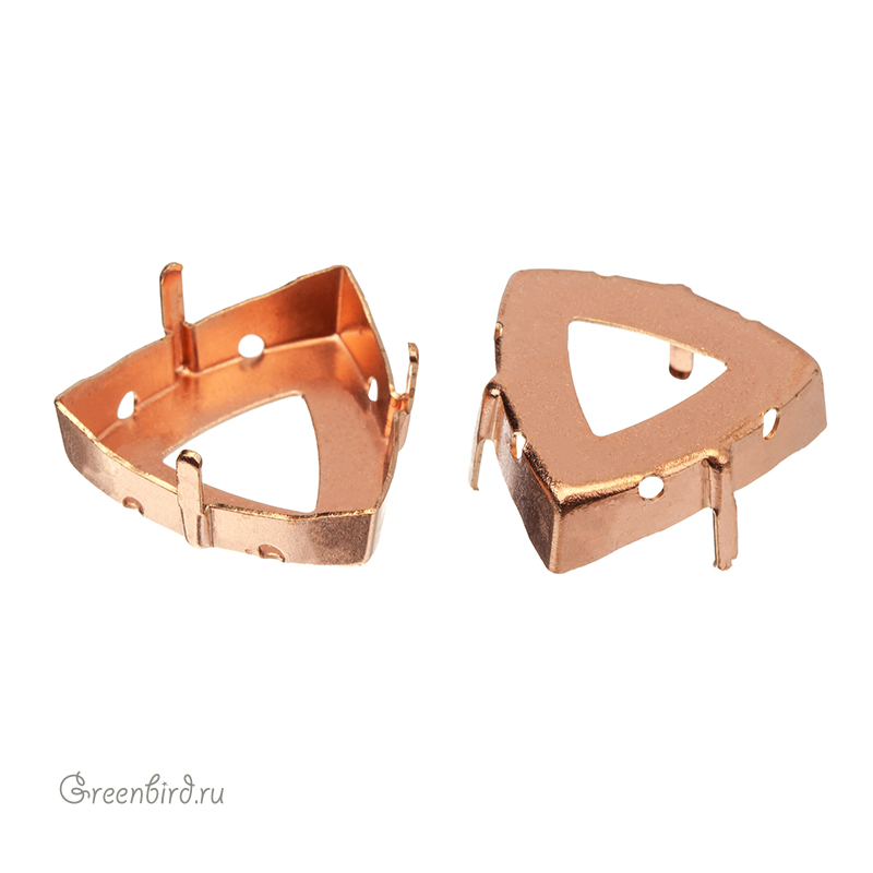 Оправа для ювелирных кристаллов - 4799 Prismatic Triangle FS. Размер: 20 х 20,4 мм, высота боковой стороны (без лапок): 5,5 мм, отверстия: 1,2-1,4 мм. Материал: томпак (разновидность латуни), без покрытия. Технические, подходят для пайки. Допускается неоднородность цвета. В разных партиях цвет может варьироваться от светло-золотого к медному. Производство: Германия. Цена указана за 1 шт.