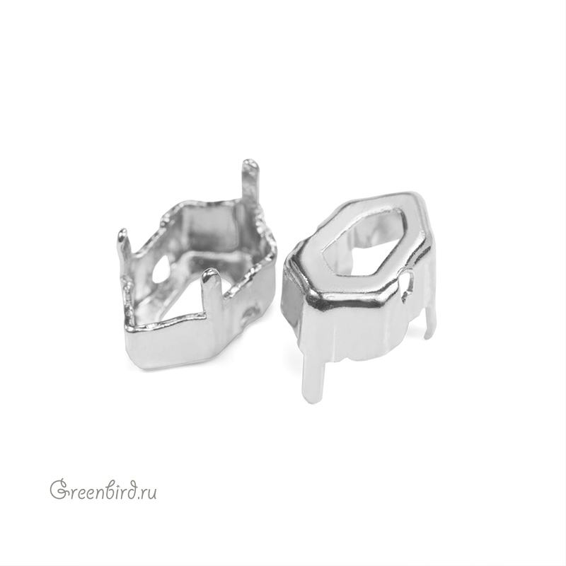 Оправа для кристаллов Swarovski – 4707 Slim Trilliant. Размер: 7,8 х 4,9 мм, отверстия: 0,7 и 1 мм. Металл: томпак (разновидность латуни), покрытие: родий. Цена указана за 1 шт.
