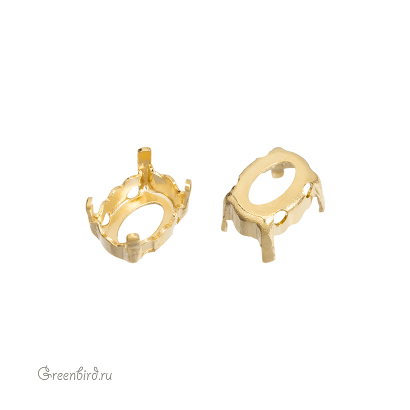 Оправа для ювелирных кристаллов Квадрат – 4160 Magical Oval Fancy Stone. Размер: 8 х 6 мм, высота боковой стороны (без лапок): 3 мм, отверстия: 1-1,1 мм. Материал: томпак (разновидность латуни), покрытие: золото. Производство: Германия. Цена указана за 1 шт.