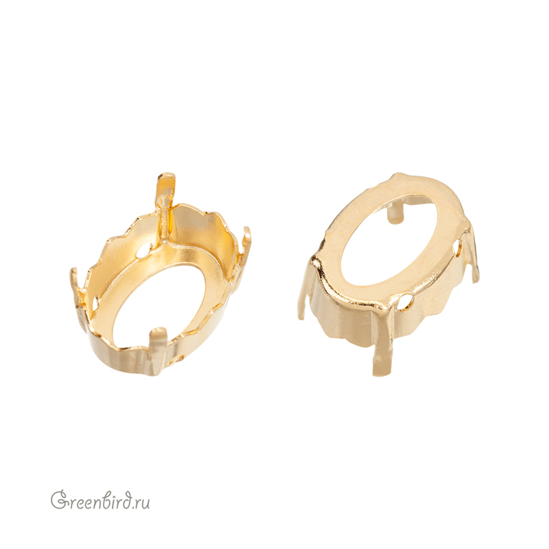 Оправа для ювелирных кристаллов Квадрат – 4160 Magical Oval Fancy Stone. Размер: 14 х 14 мм, высота боковой стороны (без лапок): 5 мм, отверстия: 1,1-1,2 мм. Материал: томпак (разновидность латуни), покрытие: золото. Производство: Германия. Цена указана за 1 шт.