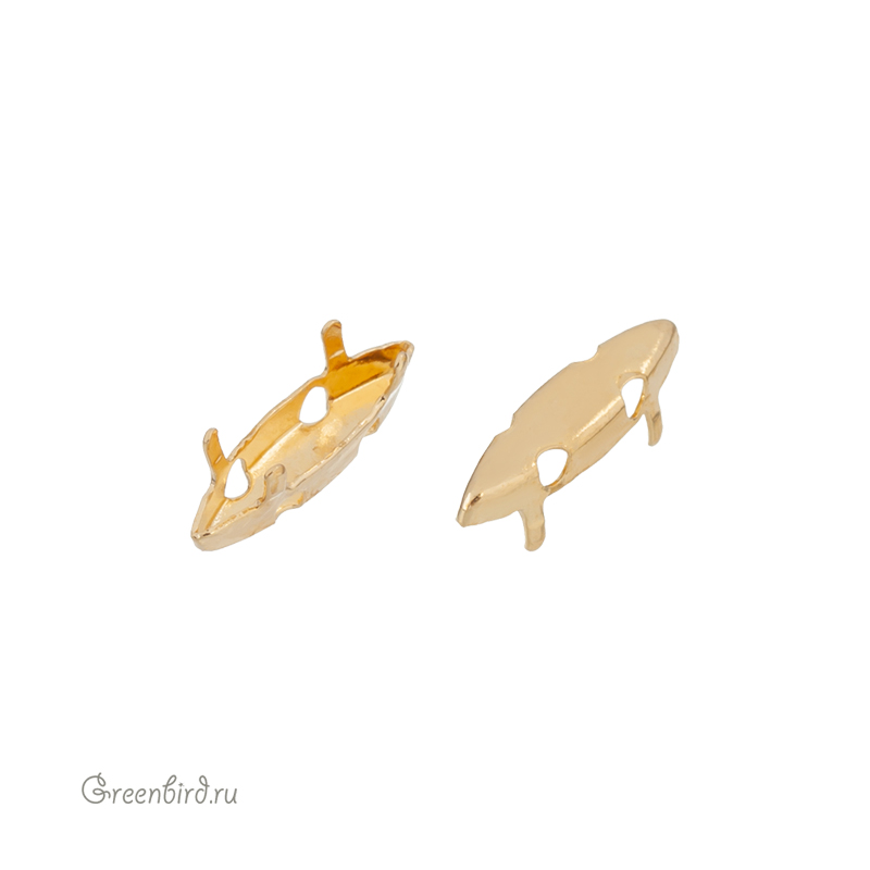 Оправа для ювелирных кристаллов – 4200 Marquise Fancy Stone FS. Размер: 11 х 3 мм, высота боковой стороны (без лапок): 1,8-1,9 мм, отверстия: 1,1 мм. Материал: томпак (разновидность латуни), покрытие: золото. Производство: Германия. Цена указана за 1 шт.