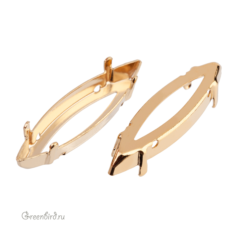 Оправа для ювелирных кристаллов – 4200 Marquise Fancy Stone FS. Размер: 35 х 9,5 мм, высота боковой стороны (без лапок): 5 мм, отверстия: 1,4-1,5 мм. Материал: томпак (разновидность латуни), покрытие: золото. Производство: Германия. Цена указана за 1 шт.