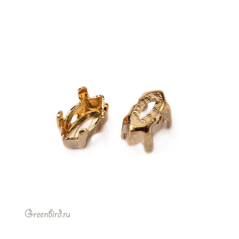 Оправа для ювелирных кристаллов Наветт – 4228 Navette FS. Размер: 6 х 3 мм, высота боковой стороны (без лапок): 2 мм, два отверстия: 0,7 мм. Материал: томпак (разновидность латуни), покрытие: золото. Производство: Германия. Цена указана за 1 шт.