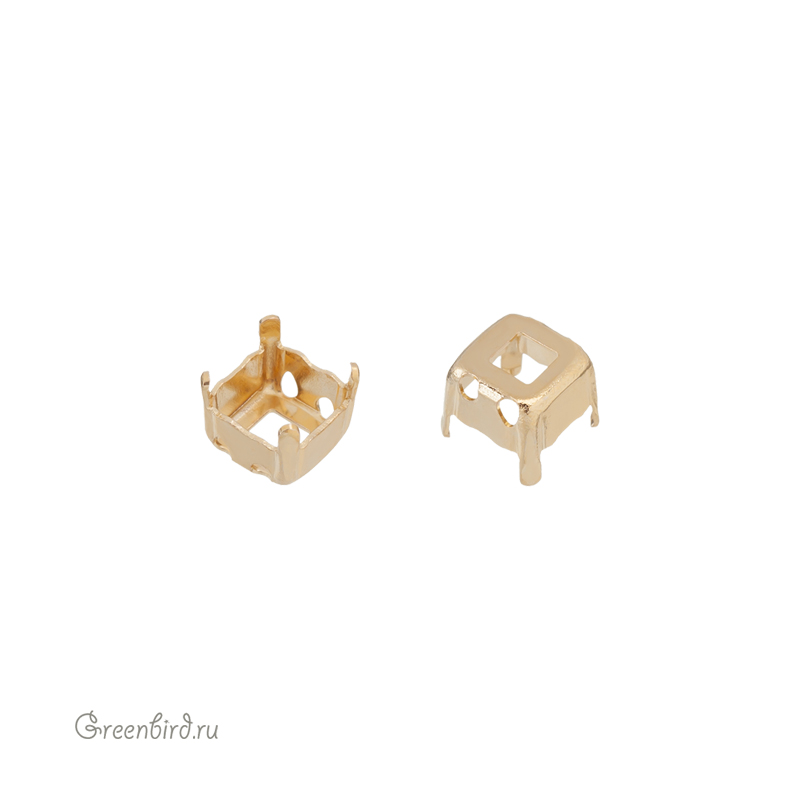 Оправа для ювелирных кристаллов Квадрат – 4480 Imperial Fancy Stone. Размер: 6 мм, высота боковой стороны (без лапок): 3,26 мм, отверстия: 0,9 мм. Материал: томпак (разновидность латуни), покрытие: золото. Производство: Германия. Цена указана за 1 шт.