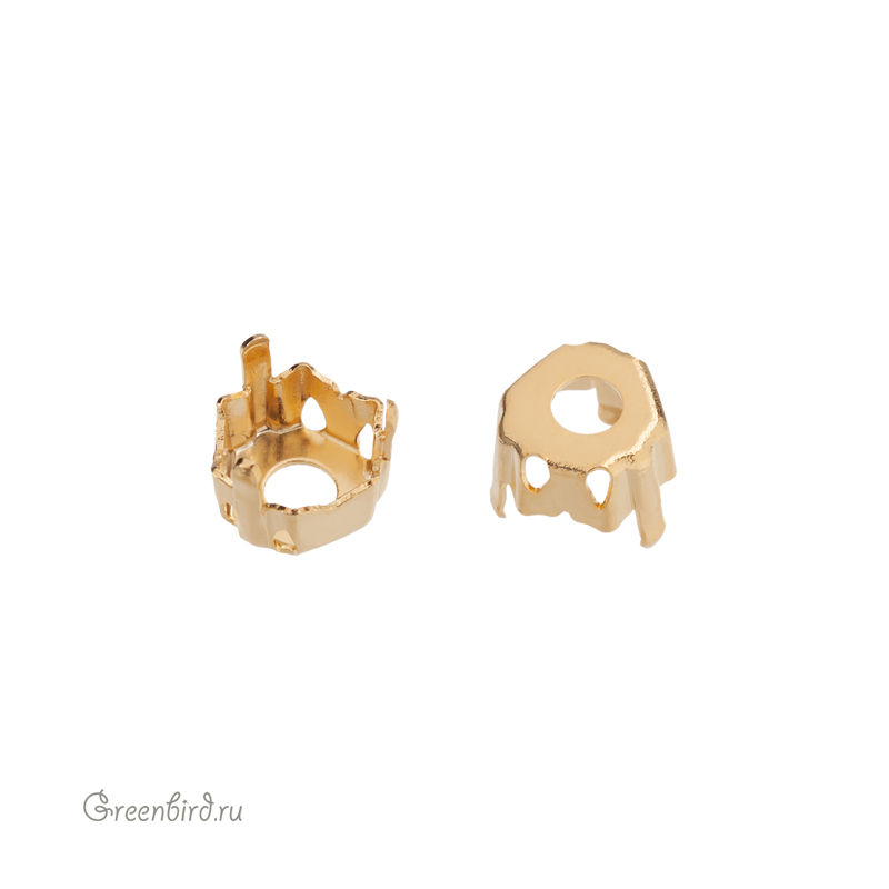 Оправа для ювелирных кристаллов – 4699 Prismatic Hexagon Fancy Stone. Размер: 6 х 6,9 мм, высота боковой стороны (без лапок): 3,3 мм, отверстия: 0,6-0,8 мм. Материал: томпак (разновидность латуни), покрытие: золото. Производство: Германия. Цена указана за 1 шт.
