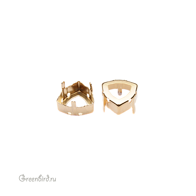 Оправа для ювелирных кристаллов – 4706 Trilliant Fancy Stone. Размер: 12 мм, высота боковой стороны (без лапок): 3,4 мм, отверстия: 0,9 мм. Материал: томпак (разновидность латуни), покрытие: золото. Производство: Германия. Цена указана за 1 шт.