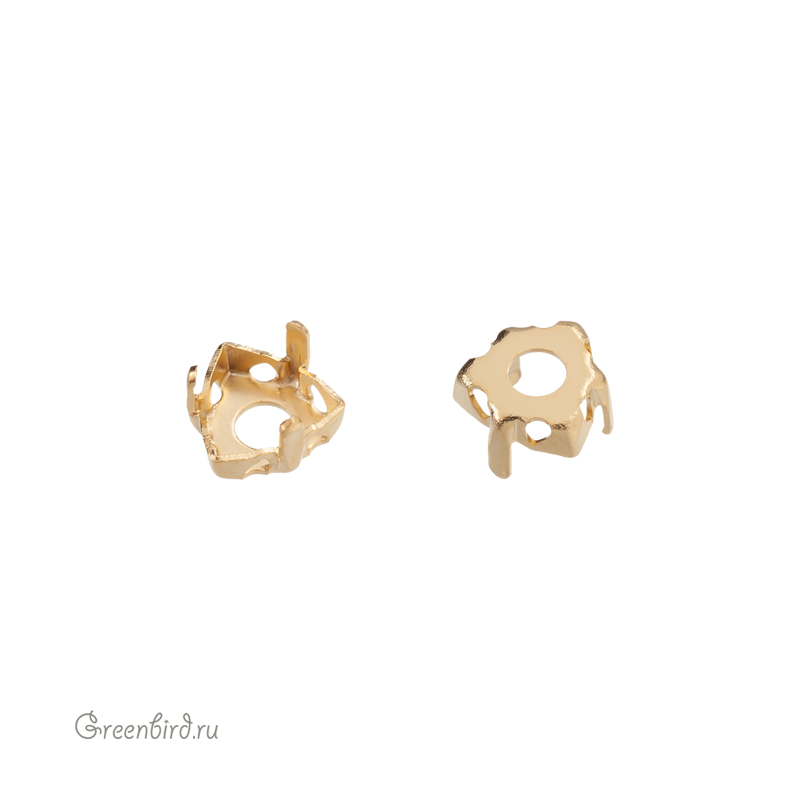 Оправа для ювелирных кристаллов – 4799 Prismatic Triangle Fancy Stone FS. Размер: 6,0 х 6,1 мм, высота боковой стороны (без лапок): 1,8 мм, отверстия: 0,8 мм. Материал: томпак (разновидность латуни), покрытие: золото. Производство: Германия. Цена указана за 1 шт.