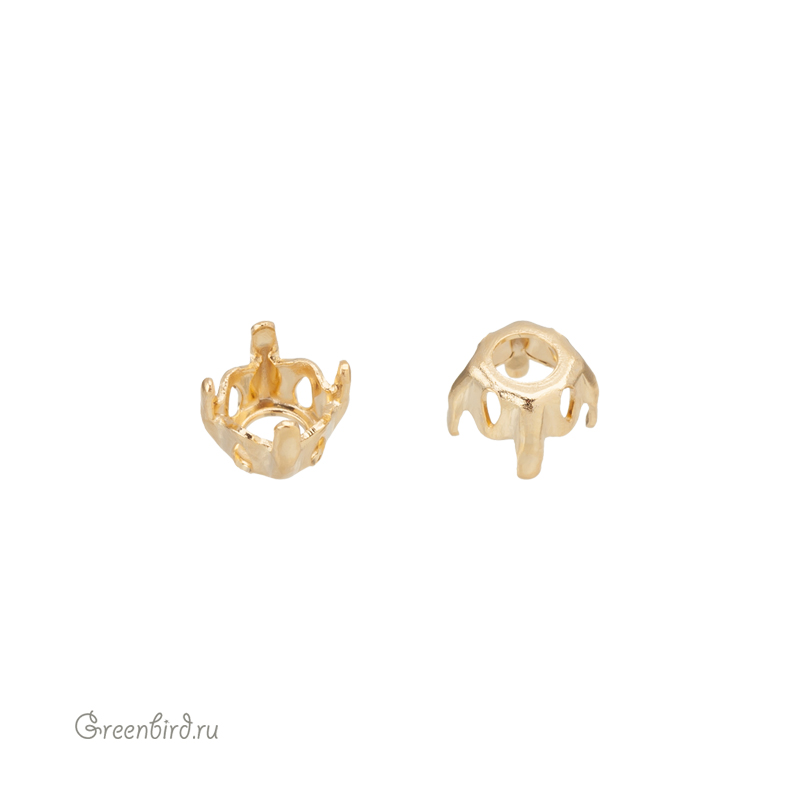 Оправа для ювелирных кристаллов – 1088 Chaton. Размер: SS18/19 (5 мм), высота боковой стороны (без лапок): 2,85-3,01 мм, отверстия: 0,8 мм. Материал: томпак (разновидность латуни), покрытие: золото. Производство: Германия. Цена указана за 1 шт.