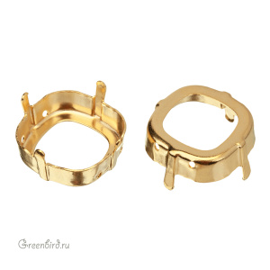Оправа для ювелирных кристаллов Кушон Квадрат - 4470 Cushion Square Fancy Stone. Размер: 18 мм, высота боковой стороны (без лапок): 5,15 мм, отверстия: 0,9 мм. Материал: Материал: томпак (разновидность латуни), покрытие: золото. Производство: Германия. Цена указана за 1 шт.