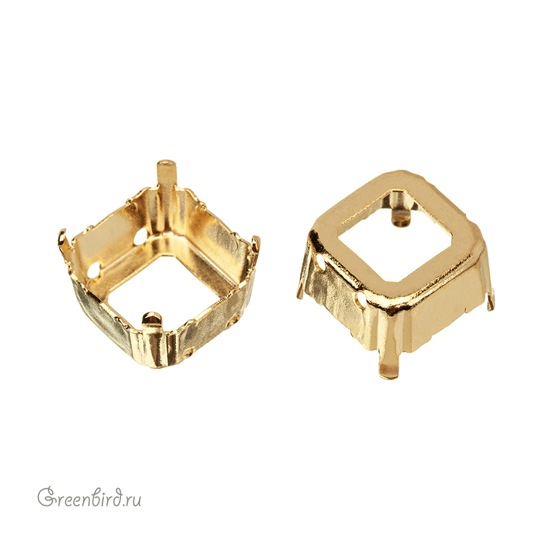 Оправа для ювелирных кристаллов Квадрат - 4480 Imperial Fancy Stone. Размер: 14 мм, высота боковой стороны (без лапок): 6,4 мм, отверстия: 0,8-1 мм. Материал: томпак (разновидность латуни), покрытие: золото. Производство: Германия. Цена указана за 1 шт.