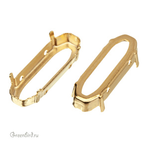 Оправа для овальных ювелирных кристаллов - 4161 Long Classical Oval. Размер: 27 х 9 мм, высота боковой стороны (без лапок): 3,6 мм, отверстия: 1,3 мм. Материал: томпак (разновидность латуни), покрытие: золото. Производство: Германия. Цена указана за 1 шт.