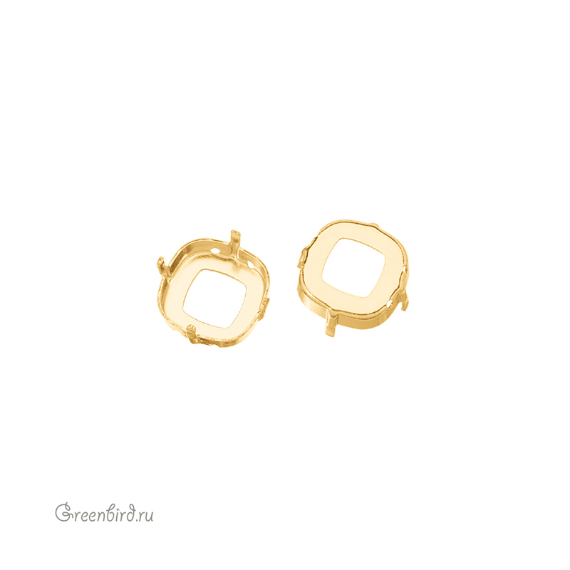 Оправа для ювелирных кристаллов Кушон Квадрат - 4470 Cushion Square Fancy Stone. Размер: 10 мм, высота боковой стороны (без лапок): 3,4 мм, отверстия: 0,9 мм. Материал: томпак (разновидность латуни), покрытие: золото. Производство: Германия. Цена указана за 1 шт.