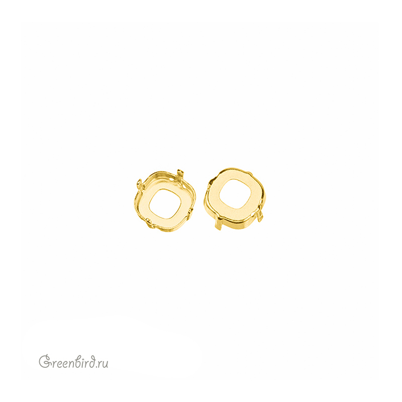 Оправа для ювелирных кристаллов Тонкий Кушон Квадрат - 4483 Thin Cushion FS. Размер: 8 мм, высота боковой стороны (без лапок): 2,4 мм, отверстия: 0,8-1 мм. Материал: томпак (разновидность латуни), покрытие: золото. Производство: Германия. Цена указана за 1 шт.