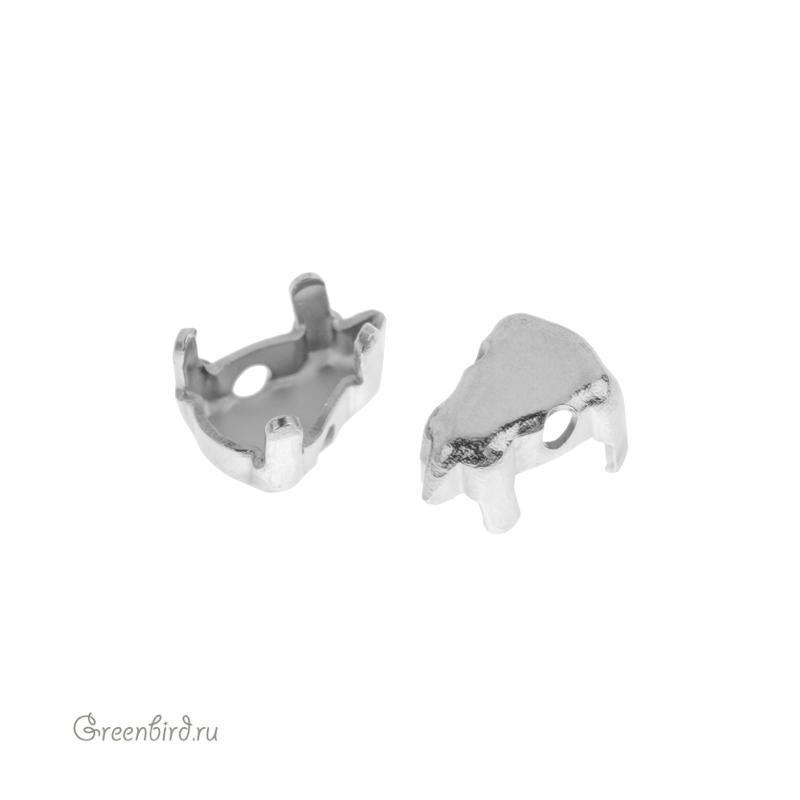 Оправа для кристаллов Swarovski – 4328 Pear Fancy Stone. Размер: 6 х 3,6 мм, металл: томпак (разновидность латуни), покрытие: родий. Цена указана за 1 шт.