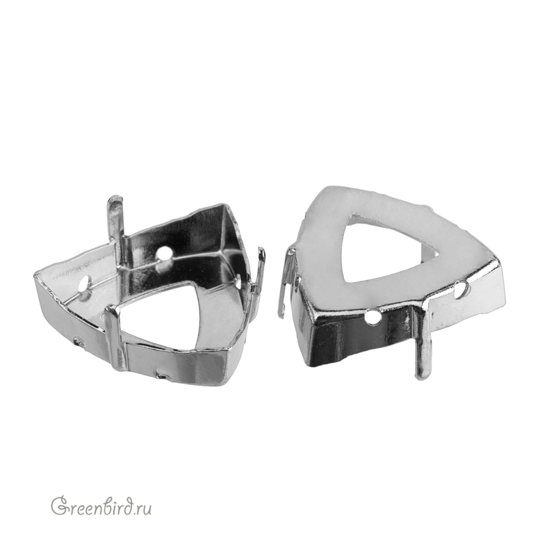 Оправа для кристаллов Swarovski – 4799 Prismatic Triangle Fancy Stone. Размер: 20 х 20,4 мм, металл: томпак (разновидность латуни), покрытие: родий. Цена указана за 1 шт.