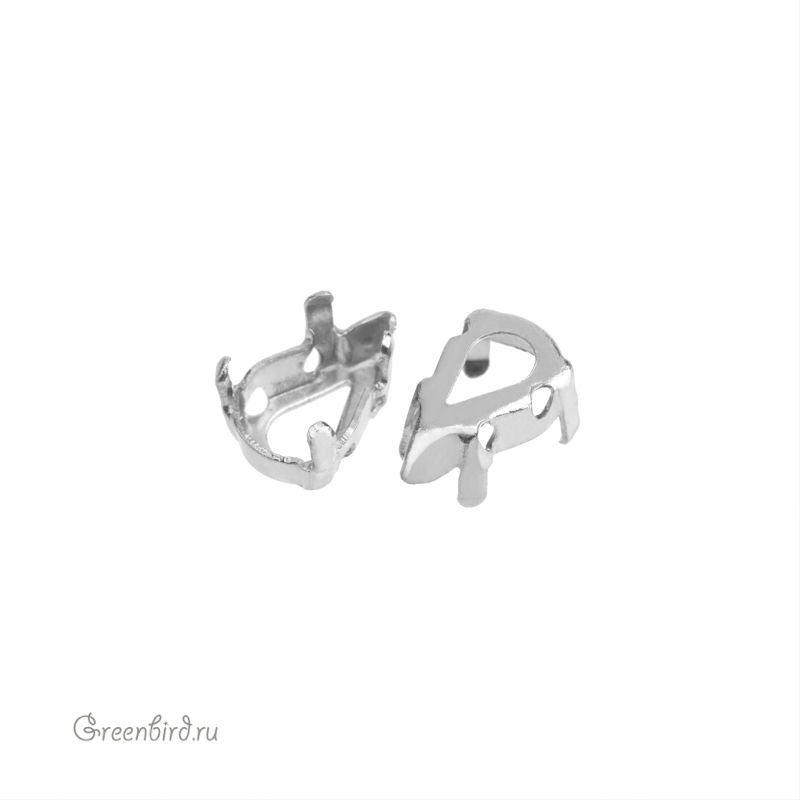 Оправа для кристаллов Swarovski – 4328 Pear Fancy Stone. Размер: 8 х 4,8 мм, металл: томпак (разновидность латуни), покрытие: родий. Цена указана за 1 шт.