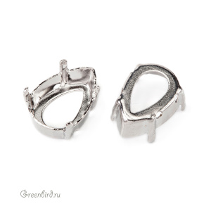 Оправа для кристаллов Swarovski – 4320 Pear Fancy Stone. Размер: 14 х 10 мм, металл: томпак (разновидность латуни), покрытие: родий. Цена указана за 1 шт.