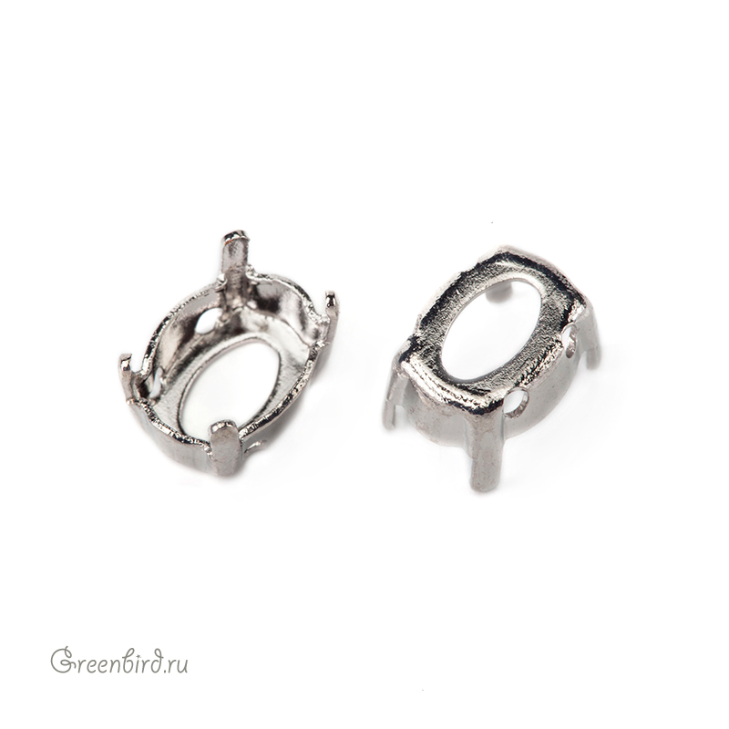 Оправа для кристаллов Swarovski – 4120 Oval Fancy Stone. Размер: 8 х 6 мм, металл: томпак (разновидность латуни), покрытие: родий. Цена указана за 1 шт.