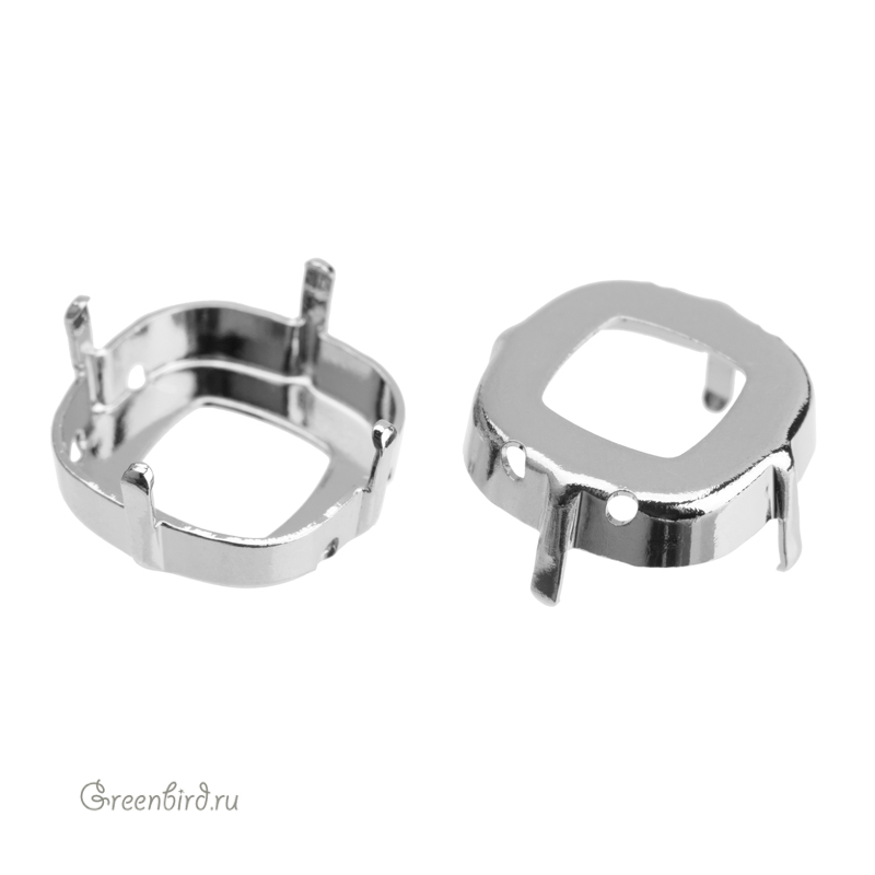 Оправа для кристаллов Swarovski – 4483 Thin Cushion Fancy Stone. Размер: 14 мм, металл: томпак (разновидность латуни), покрытие: родий. Цена указана за 1 шт.