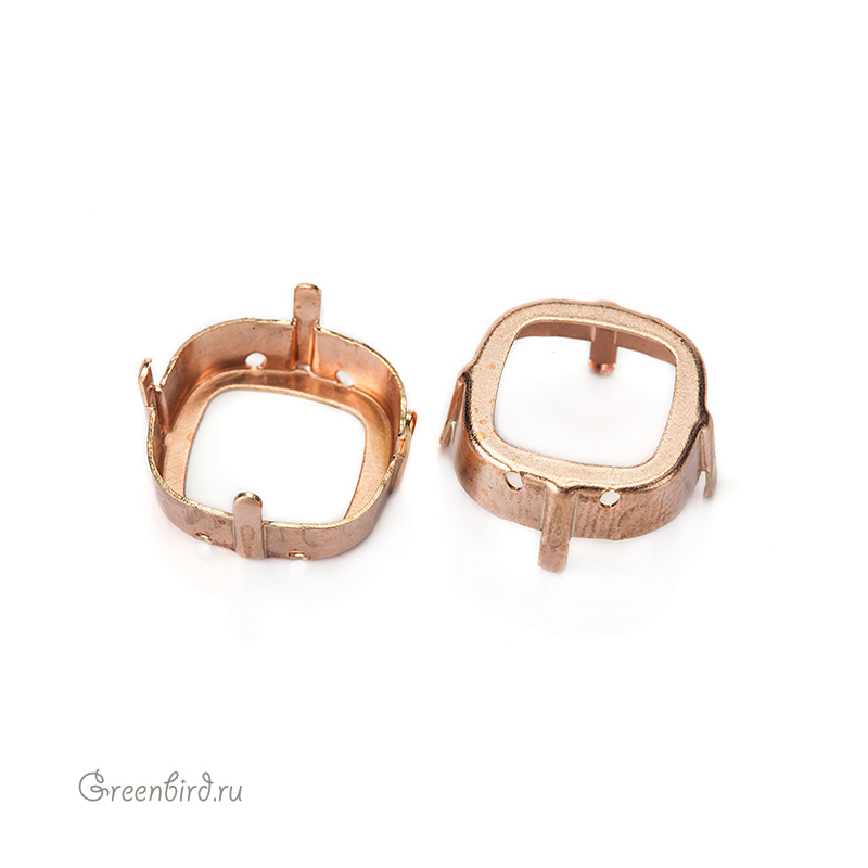 Оправа для кристаллов Swarovski – 4470 Cushion Square. Размер: 18 мм, металл: томпак (разновидность латуни) без покрытия. Технические, подходят для пайки. Допускается неоднородность цвета. В разных партиях цвет может варьироваться от светло-золотого к медному. Цена указана за 1 шт.