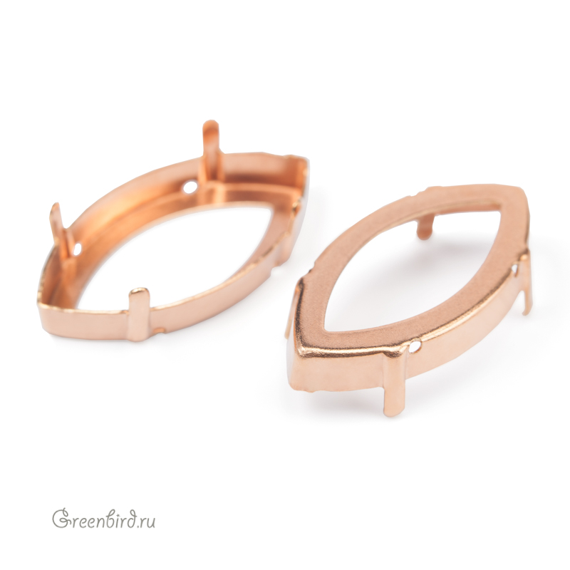 Оправа для кристаллов Swarovski – 4227 Navette Fancy Stone. Размер: 32 х 17 мм, металл: томпак (разновидность латуни) без покрытия. Технические, подходят для пайки. Допускается неоднородность цвета. В разных партиях цвет может варьироваться от светло-золотого к медному. Цена указана за 1 шт.
