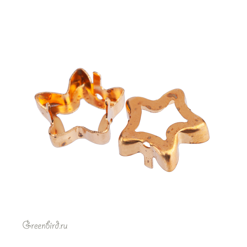 Оправа для кристаллов Swarovski – 4754 Starbloom Fancy Stone. Размер: 13 x 13,5 мм, металл: томпак (разновидность латуни) без покрытия. Технические, подходят для пайки. Допускается неоднородность цвета. В разных партиях цвет может варьироваться от светло-золотого к медному. Цена указана за 1 шт.