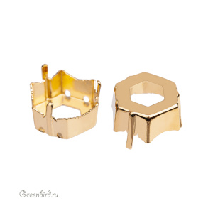 Оправа для кристаллов Swarovski – 4699 Prismatic Hexagon Fancy Stone. Размер: 14 х 16 мм, металл: томпак (разновидность латуни), покрытие: золото. Цена указана за 1 шт.