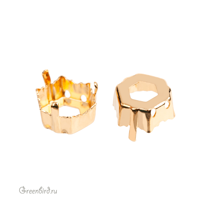 Оправа для кристаллов Swarovski – 4699 Prismatic Hexagon Fancy Stone. Размер: 9,4 х 10,8 мм, металл: томпак (разновидность латуни), покрытие: золото. Цена указана за 1 шт.