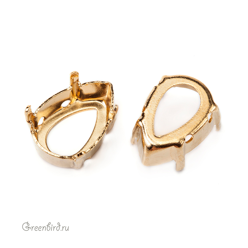 Оправа для кристаллов Swarovski – 4320 Pear Fancy Stone. Размер: 14 х 10 мм, металл: томпак (разновидность латуни), покрытие: золото. Цена указана за 1 шт.