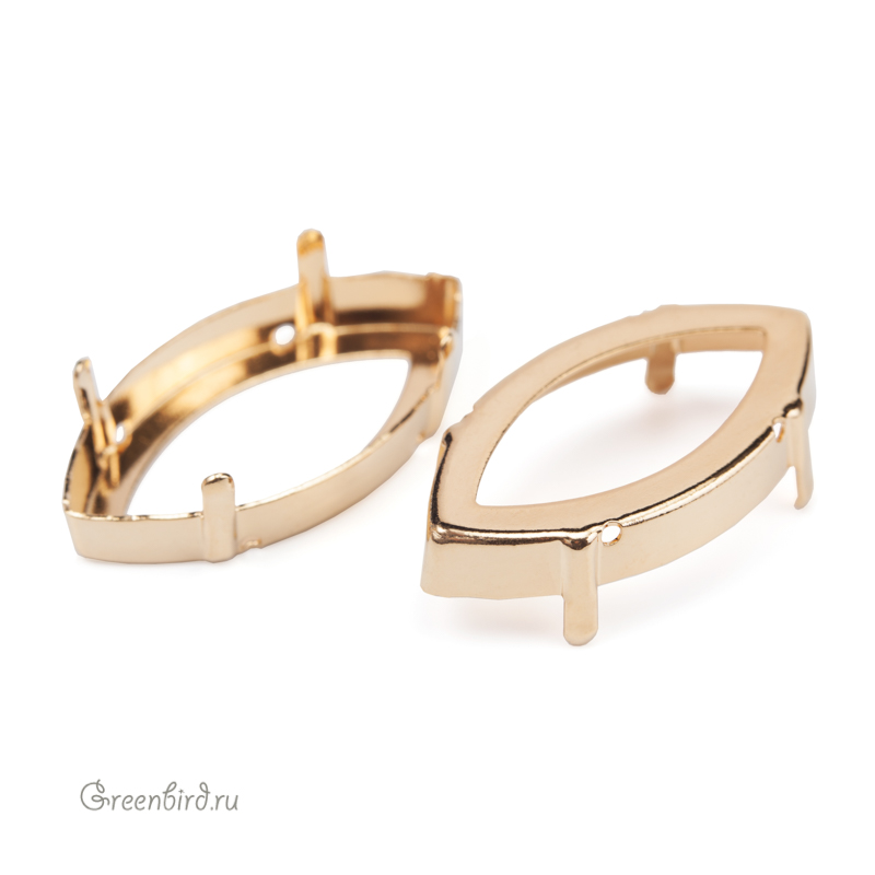 Оправа для кристаллов Swarovski – 4227 Navette Fancy Stone. Размер: 32 х 17 мм, металл: томпак (разновидность латуни), покрытие: золото. Цена указана за 1 шт.