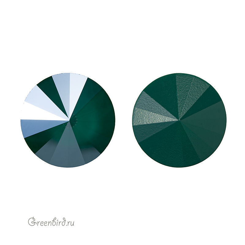 Компонент для бижутерии Swarovski – Риволи (Swarovski Rivoli). Размер: 14 мм, высота: 6,96-7,20 мм, цвет: Royal Green (#001L109S), эффект: Crystal Lacquer Pro. Производство: Австрия. Цена указана за 1 шт.