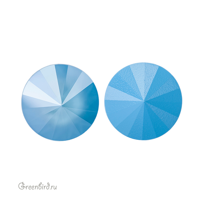 Компонент для бижутерии Swarovski – Риволи (Swarovski Rivoli). Размер: 14 мм, высота: 6,96-7,20 мм, цвет: Summer Blue (#001L114S), эффект: Crystal Lacquer Pro. Производство: Австрия. Цена указана за 1 шт.\n
