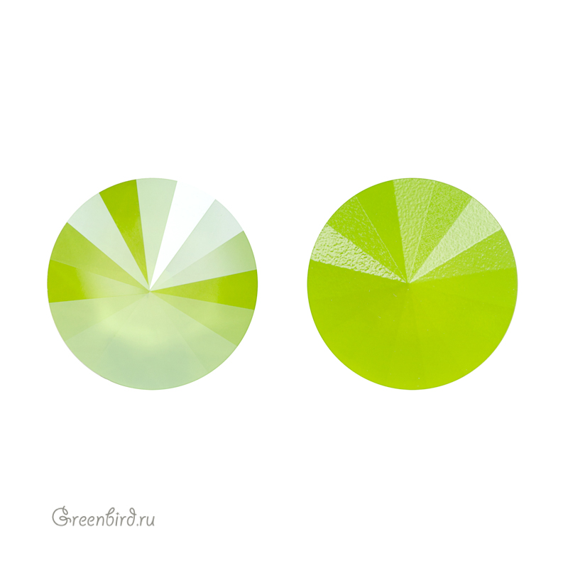 Компонент для бижутерии Swarovski – Риволи (Swarovski Rivoli). Размер: 14 мм, высота: 6,96-7,20 мм, цвет: Lime (#001L125S), эффект: Crystal Lacquer Pro. Производство: Австрия. Цена указана за 1 шт.